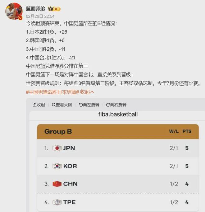 放眼下一场即3月1日中国男篮在菲律宾马尼拉对阵中国台北队的比赛,出战12人大名单不变,胡明轩和赵嘉义依然落选。