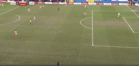 仅仅过了3分钟,阿昌庞站了出来。安德雷·桑托斯中场抢断后送出直塞,阿昌庞小角度爆射破门,将比分扳成2-2平手。